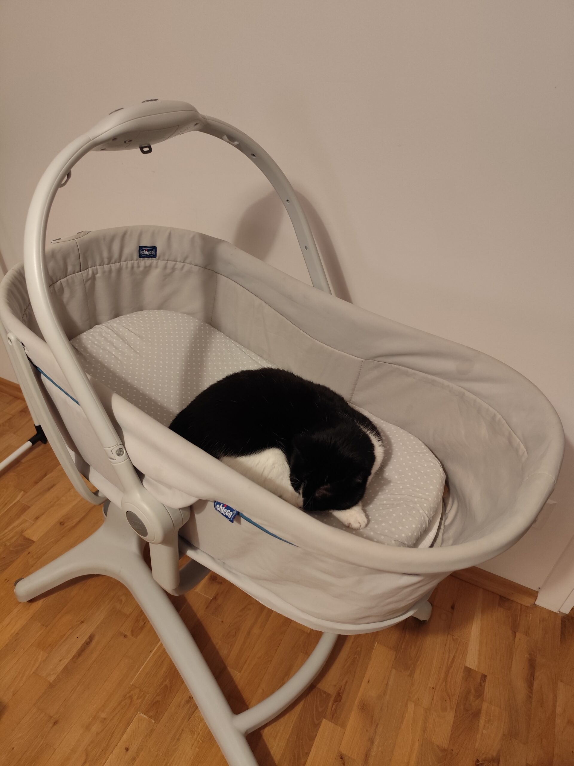 Łóżeczko, przewijak, wózek, fotelik samochodowy to wszystko wygląda i pachnie zupełnie inaczej niż to, co kot zna. Zamiast na hura ustawiać wszystko tuż przed porodem, zacznij spokojnie wcześniej.