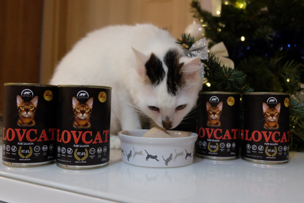 Skład Lovcat łosoś 70% łosoś, 27,6% wywar z łososia, 1% żurawina, 1% minerały, 0,1% olej z łososia, 0,1% olej z ogórecznika, 0,1% MOS, 0,1% FOS.